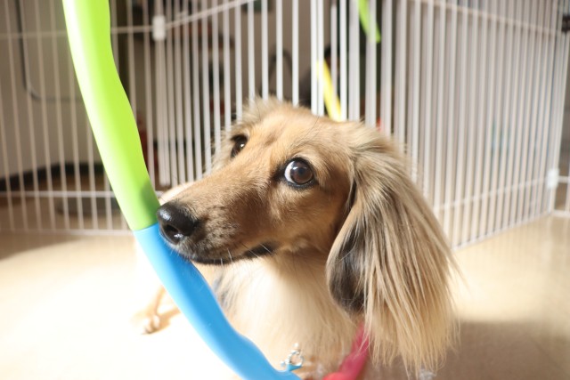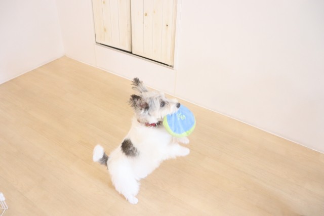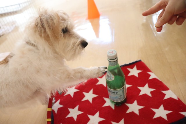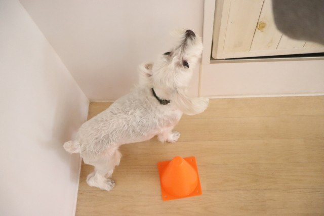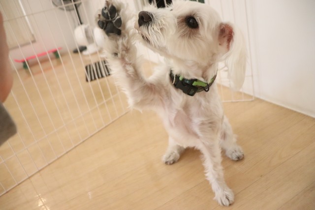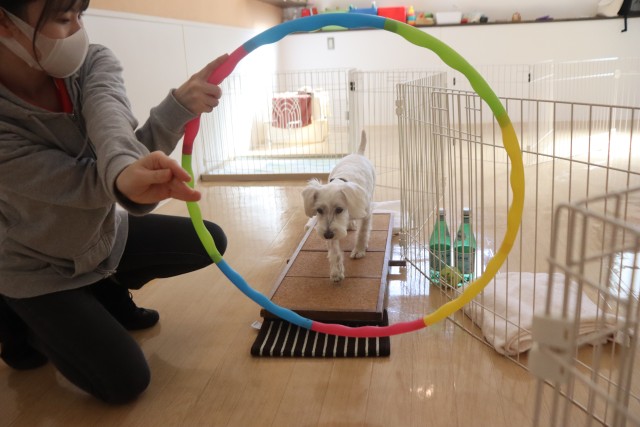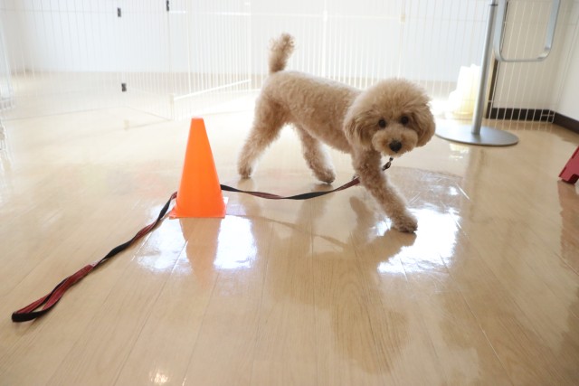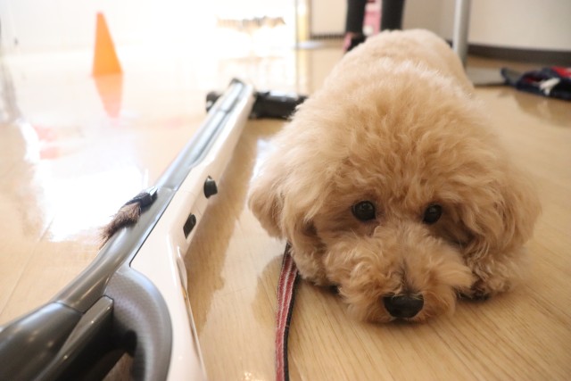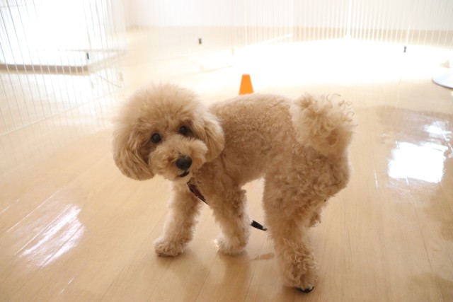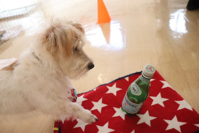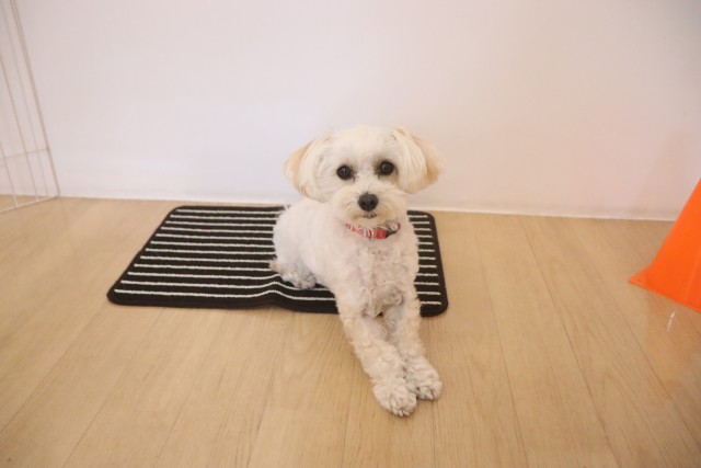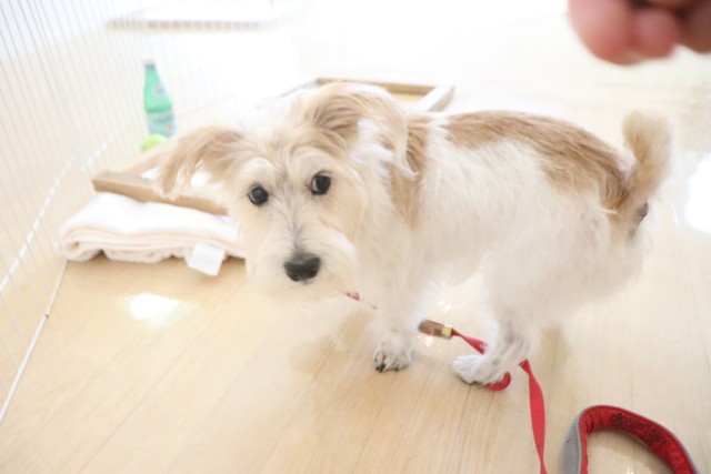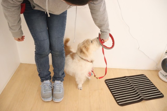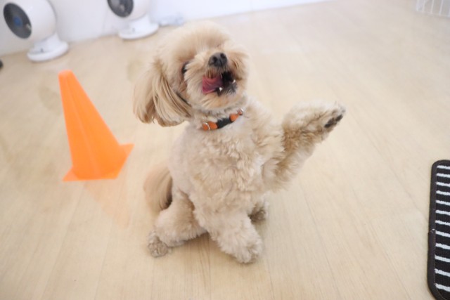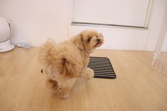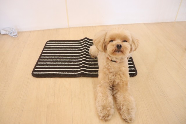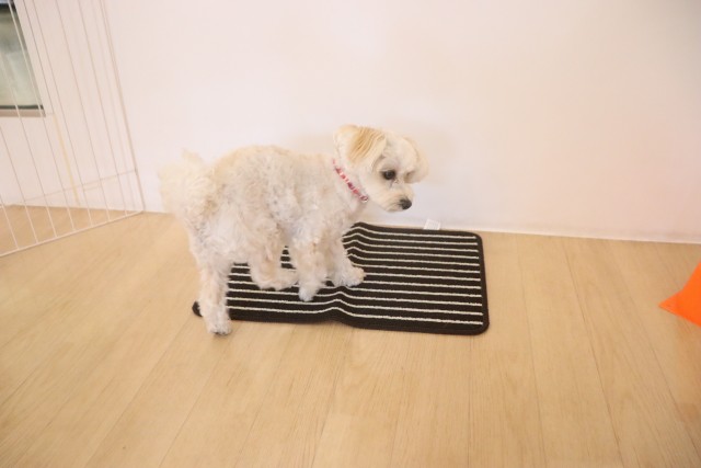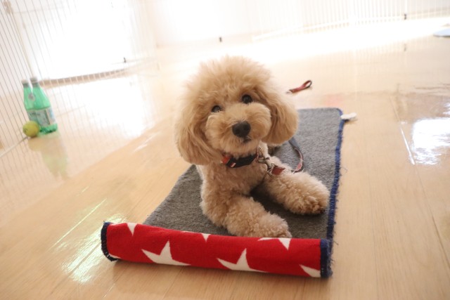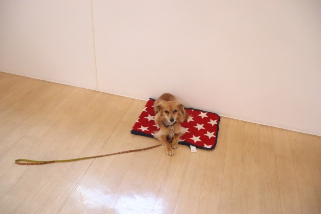 ”マット”では人が離れた状態でも落ち着いて待つことが出来ていました!お利口だね!
