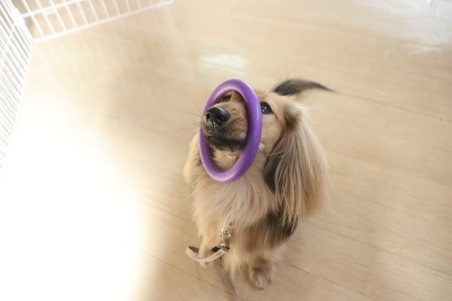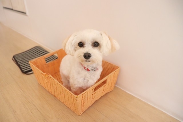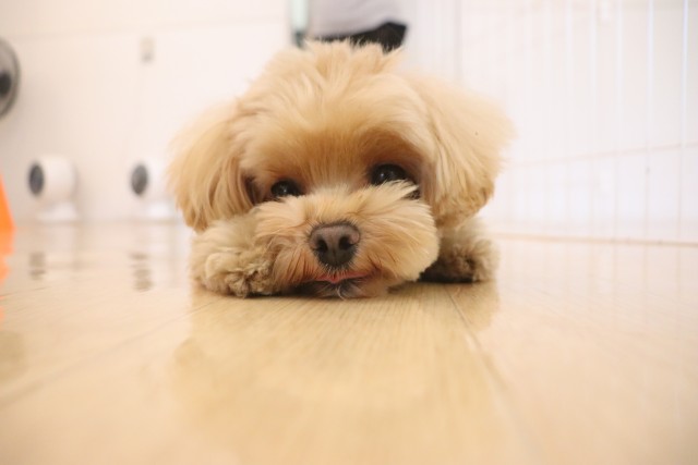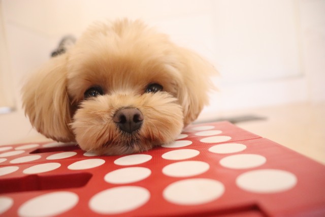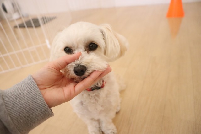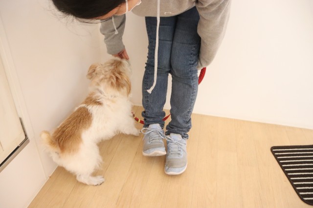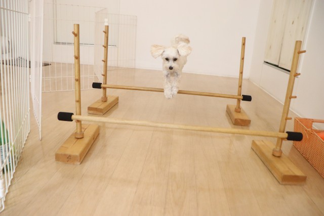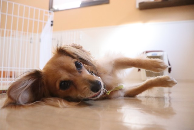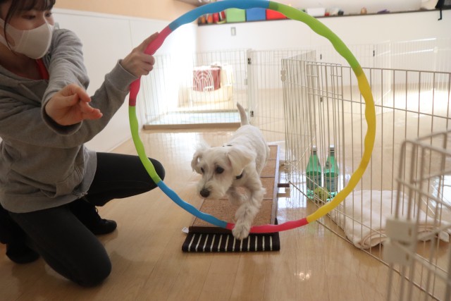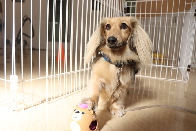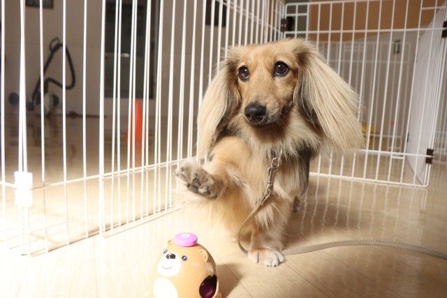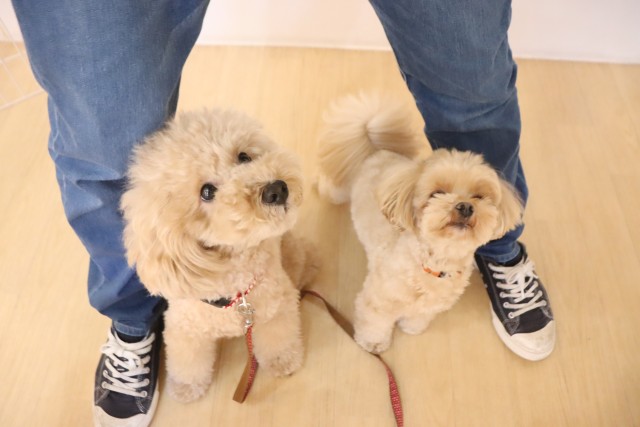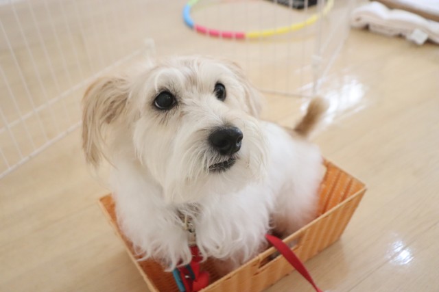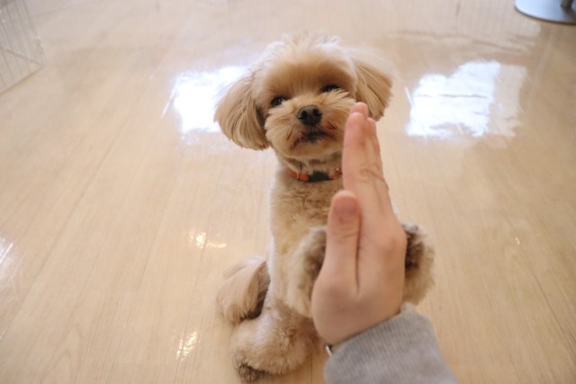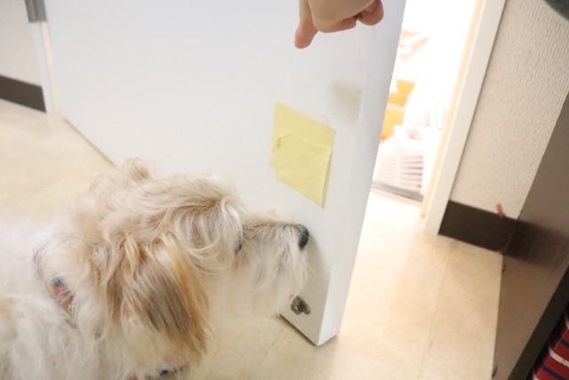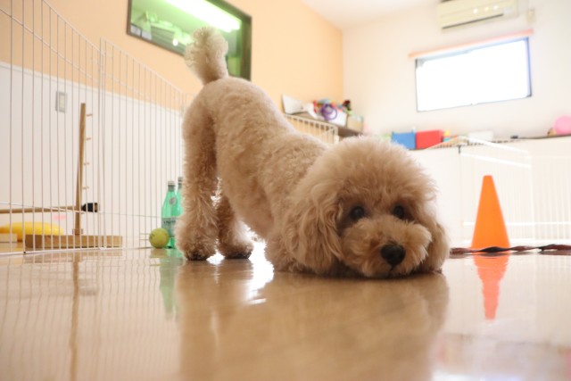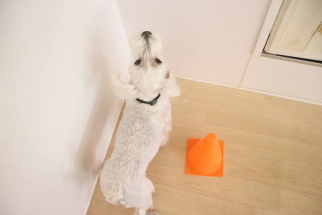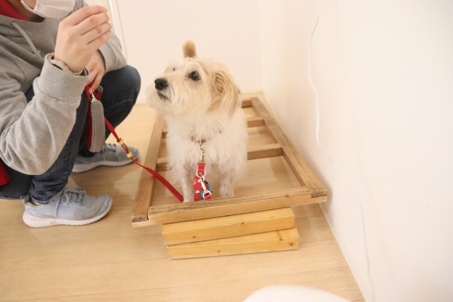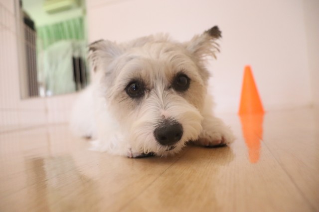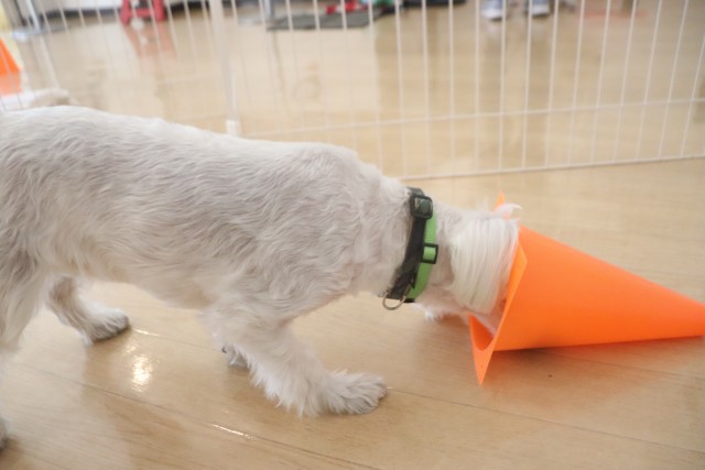 ”マット”では人が離れた状態でも落ち着いて待つことが出来ていました!お利口だね!