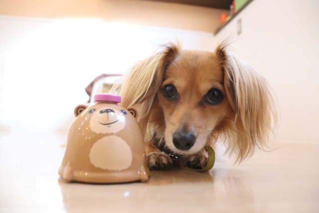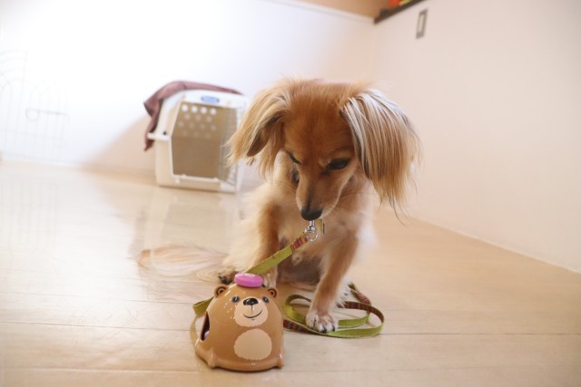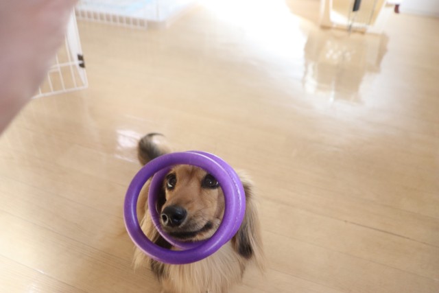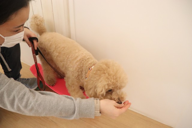 上に乗せたフードを食べることに成功!だいぶ慣れてきたね♪
