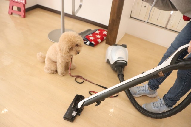 掃除機慣れでは本体を動かすと、ジッと見つめるあんちゃん…
