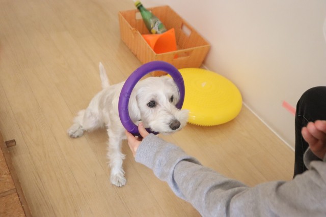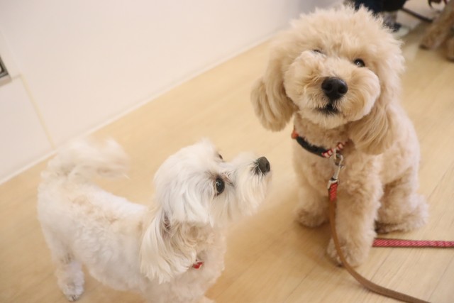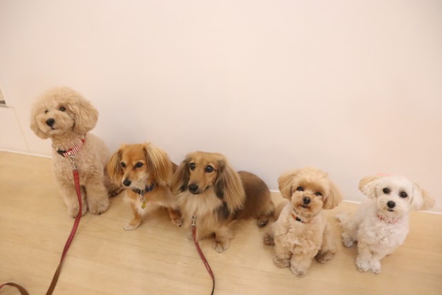 今日の保育園生は、ジャックラッセルテリアのソフィちゃん、ラルフくん、トイプードルのあんちゃん、マルチーズ×トイプードルのきなこちゃん、うるくん、ミニチュアシュナウザーのソランちゃん、カニンヘンダックスフンドのラテちゃん、チワワ×ミニチュアダックスフンドのらいくんです!