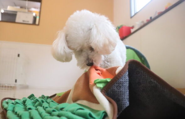 フードの誘導でスムーズにクレートの中へ入ることが出来るように練習頑張っていこうね♪